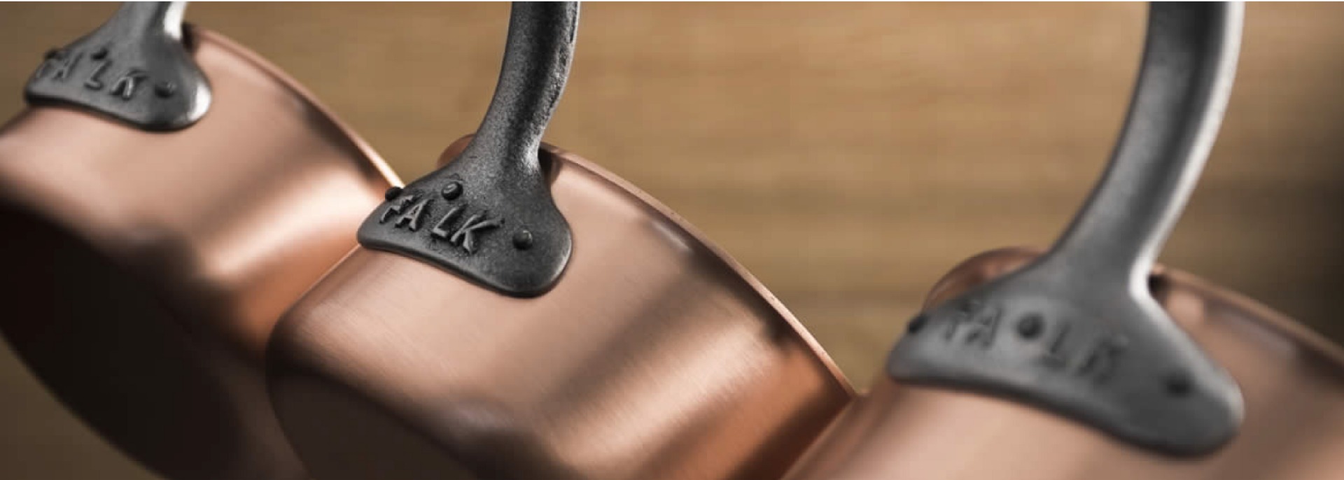 Falk Culinair專利的雙重金屬技術,使用intercrystallisation技術將 2.3mm 的純銅和 0.2mm 的 18/8 不銹鋼完美結合,使FALK銅鍋兼具了銅的快速導熱性及不銹鋼烹飪的優點。